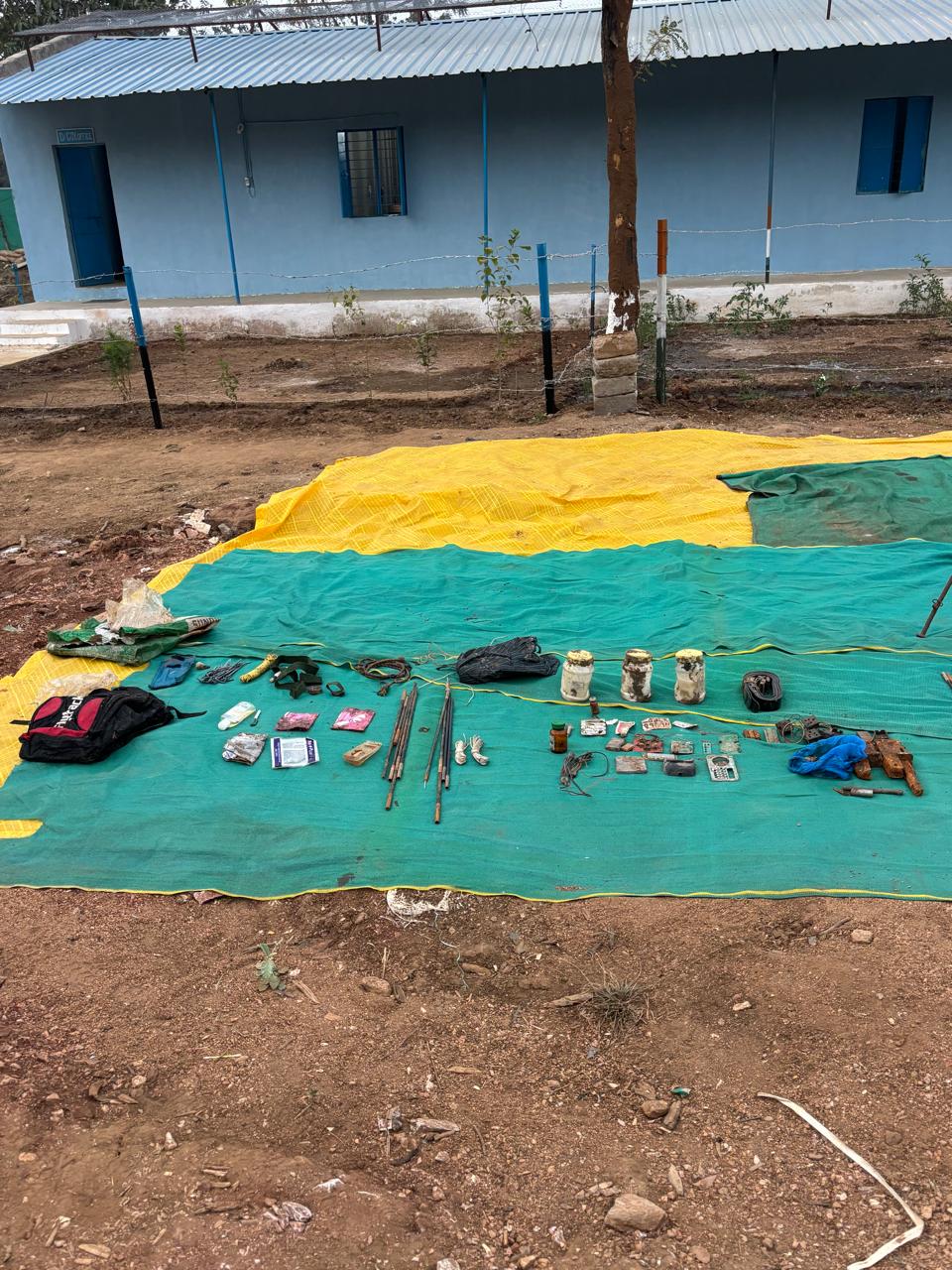 इस डंप की तलाशी लेने पर सुरक्षाबलों को भारी मात्रा में घातक सामग्री और दैनिक उपयोग का सामान मिला. बरामद सामानों में दो देसी सिंगल शॉट राइफल, लगभग ढाई किलो मॉडिफाइड अमोनियम नाइट्रेट, आईईडी बनाने के लिए इस्तेमाल होने वाले तीन इंजेक्शन, स्विच, चार्जिंग सॉकेट, पेंसिल सेल और लोहे के हुक शामिल हैं. इसके अलावा मौके से नक्सलियों का टेंट, तिरपाल, दवाइयां, हैंड सैनिटाइजर, थर्मामीटर, चमड़े की बेल्ट और माओवादी साहित्य भी बरामद किया गया. सुरक्षा एजेंसियों का मानना है कि इतनी बड़ी मात्रा में विस्फोटक और आईईडी के सामान का एकत्र होना इस बात का संकेत है कि नक्सली किसी बड़ी घटना को अंजाम देने की फिराक में थे.