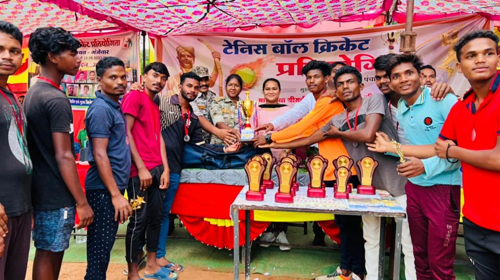 कवि सिंहा, दंतेवाड़ा। शहीद वीर गुण्डाधुर युवा समिति एवं गंजेनार युवा क्रिकेट क्लब द्वारा टेनिस बॉल क्रिकेट प्रतियोगिता का आयोजन ग्राम पंचायत गंजेनार में किया गया। इस प्रतियोगिता में 12 पंचायत के खिलाड़ियों ने हिस्सा लिया। क्रिकेट प्रतियोगिता के समापन अवसर पर जिला पंचायत अध्यक्ष तुलिका कर्मा विशेष रूप से मौजूद रही। फाइनल मैच ग्राम पंचायत मोलसनार व ग्राम पंचायत गंजेनार के बीच खेला गया, जिसमें गंजेनार ने जीत हासिल की। खिलाड़ियों को संबोधित करते जिपं अध्यक्ष ने कहा कि खेल के प्रति युवाओं का जज्बा आज देखते ही बन रहा है। मेरे जिला पंचायत क्षेत्र में इस तरह की प्रतियोगिता आयोजित होना मेरे लिए गर्व की बात है। अंदरूनी इलाकों के युवा अब खेल के माध्यम से अपने गांव व जिले का नाम रौशन कर रहे हैं। तुलिका ने आगे कहा की जिले में बहुत जल्दी खिलाड़ियों के लिए खेल एकेडमी का निर्माण कराया जाएगा, जहां खिलाड़ी परिसर में ही रहकर खेल के गुर सीखेंगे साथ ही नेशनल स्तर पर होने वाले प्रतियोगिता में भाग लेंगे। पुलिस अधीक्षक सिद्धार्थ तिवारी द्वारा खिलाड़ियों के लिए क्रिकेट किट भी दिया गया, जिसे डीएसपी आशा रानी, आरआई लोकेश कसेर द्वारा खिलाड़ियों में वितरण किया गया। अंत में जिपं अध्यक्ष समेत सभी अतिथियों ने विजेता टीम को 15001 रुपए व कप वहीं दूसरी टीम को 7500 रुपए व कप उपहार स्वरूप प्रदान किया। इस दौरान धुरवा समाज के अध्यक्ष व आयोजन समिति से जुड़े जयराम कश्यप, अजय मरकाम, थाना प्रभारी कुआकोण्डा श्री भंडारी, सुरेश भास्कर समेत अन्य उपस्थित थे।