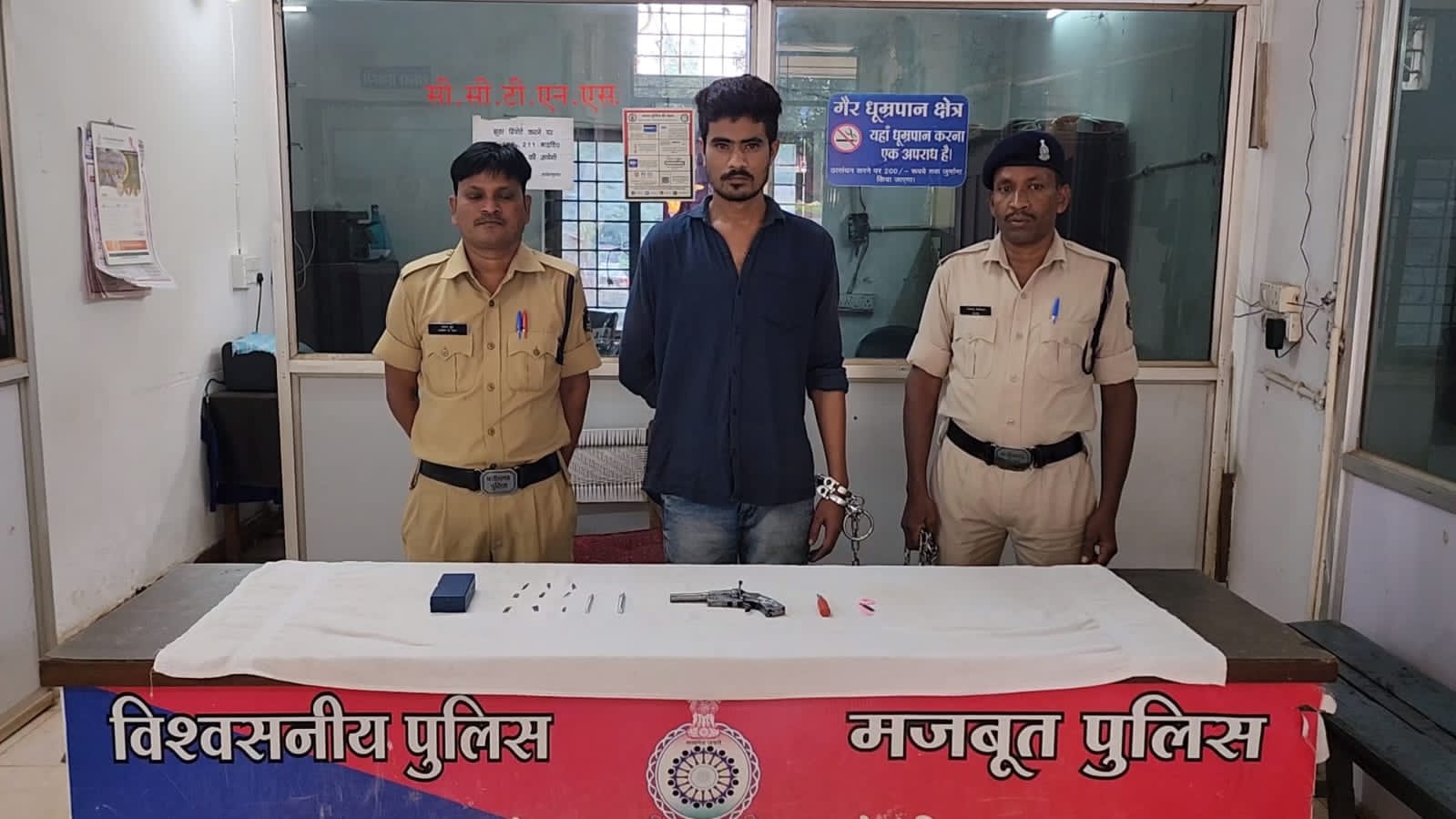 कोतवाली टीआई एमन साहू ने बताया कि पुलिस को बीती रात सूचना मिली कि शहर के दलपत सागर के पास एक युवक देसी कट्टा लेकर अपराध करने की नीयत से घूम रहा है। सूचना मिलते ही पुलिस की एक टीम को तत्काल ही मौके पर के लिए रवाना किया गया। मौके पर पहुंचने के बाद पुलिस की टीम ने एक संदिग्ध युवक की पहचान करते हुए उसे घेराबंदी करते धर दबोचा। इसके बाद पुलिस ने संदिग्ध युवक से पूछताछ करते हुए उसकी तलाशी ली। तलाशी के दौरान पुलिस ने युवक के पास से एक देसी कट्टा और धारदार बेल्ड बरामद किया। कड़ी पूछताछ में युवक ने देसी कट्टा के बारे में पुलिस को संतोषजनक जवाब नही दिया। जिसके बाद पुलिस ने आरोपी अजय राजपूत (25) निवासी गीदम रोड को गिरफ्तार कर लिया। फिलहाल पुलिस ने आर्म्स एक्ट की धारा 25 के तहत मामला दर्ज करते हुए आरोपी को न्यायिक हिरासत में भेज दिया है।