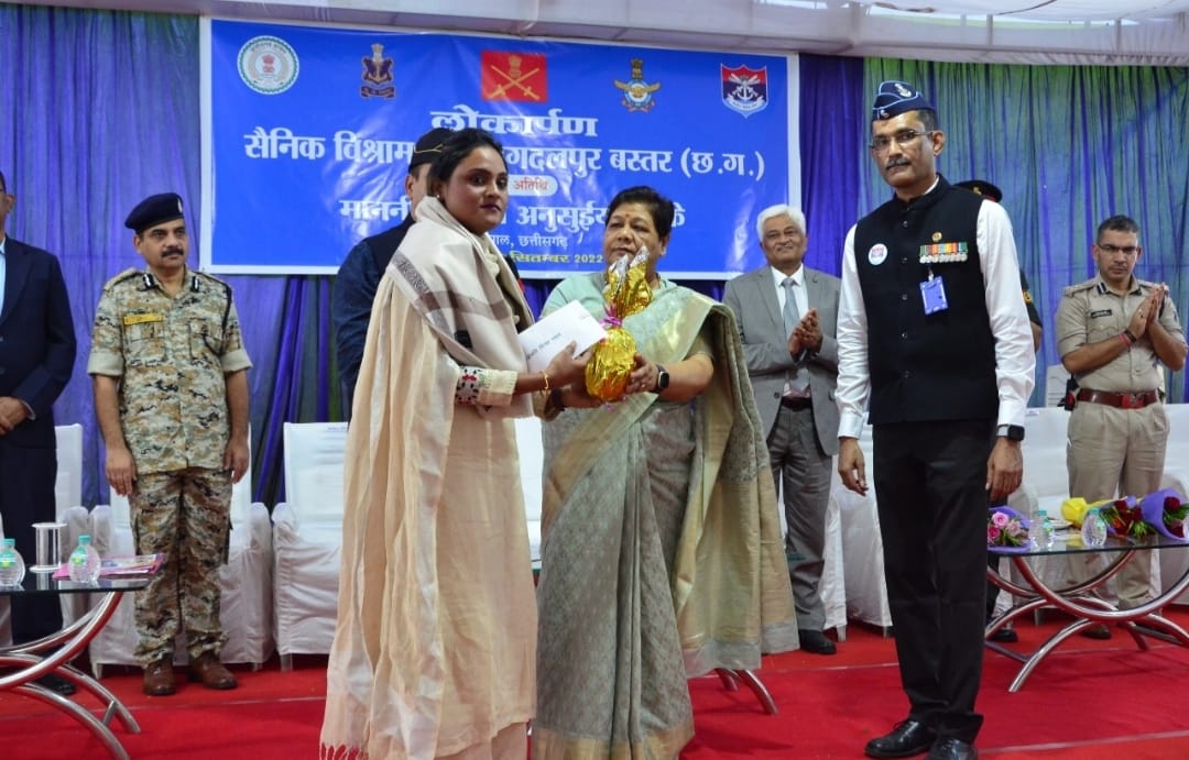 जगदलपुर (अमन दास मानिकपुरी)। शहर के धरमपुरा स्थित सैनिक कल्याण बोर्ड कार्यालय के परिसर में सैनिक विश्रामगृह के लोकार्पण कार्यक्रम में राज्यपाल सुश्री अनुसुईया उईके शामिल हुईं। इस कार्यक्रम पर उन्होंने कहा कि मैं उन सैनिक परिवारों के बीच हूँ, जिनके शूरवीरों ने अपनी पूरी जिन्दगी कठिन परिस्थितियों में देश की रक्षा में सदैव अपनी भूमिका निभाई है। वह चाहे तपता हुआ रेगिस्तान हो या शून्य डिग्री के नीचे सियाचिन ग्लेशियर हो, आप सभी देश को अपनी सेवाएँ दी हैं। उनकी इन सेवाओं के फलस्वरूप देश चारों ओर से सुरक्षित है। यह हमारा कर्तव्य ही नहीं बल्कि सम्पूर्ण जिम्मेदारी है कि हम अपने भूतपूर्व सैनिकों एवं उनके परिवारों की देखभाल करें ताकि सरहद पर तैनात सैनिक बेहिचक अपने कर्तव्य का निर्वहन भली भाँति कर सकें। सशस्त्र सेना जितना सुदृढ़ होती है देश उतना ही सुरक्षित एवं विकासशील होता है।