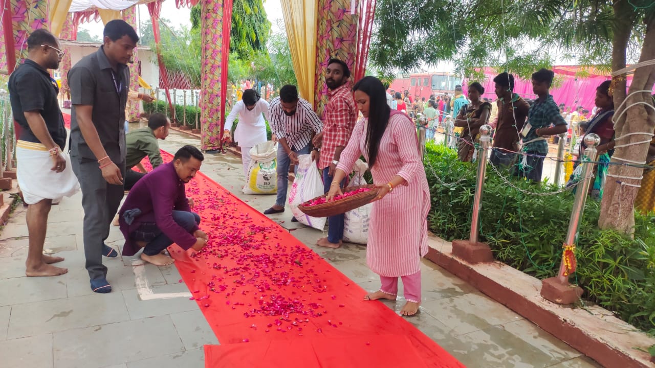 दंतेवाड़ा (कवि सिन्हा)। आदि शक्ति माँ दंतेश्वरी के धाम दंतेवाड़ा में इस बार नवरात्र कुछ खास रहा। कोरोना काल के बाद यह पहला अवसर था जब दंतेवाड़ा में बड़े ही धूम धाम से नवरात्र का पर्व मनाया गया। कल अष्टमी के दिन माँ दंतेश्वरी की डोली दशहरा में शामिल होने जगदलपुर के लिए रवाना हुई। डोली रवानगी के पहले जिला पंचायत अध्यक्ष तुलिका कर्मा ने मंदिर के मुख्य द्वार से डंकनी पुल उस पार तक के रास्ते को गुलाब के पंखुड़ियों से सजाया। जानकरी देते हुए जिपं अध्यक्ष तुलिका ने बताया कि बहुत सालों से उनकी इच्छा थी कि वह डोली विदाई के दिन मंदिर से पुल तक जहाँ डोली को रोककर पूजा की जाती उन रास्तों को गुलाब के फूलों से सजाएं। इस नवरात्र उनका सपना साकार हुआ। तुलिका ने नागपुर से गुलाब के फूल मंगाकर करीब 1 किलोमीटर तक गुलाब के पंखुड़ियों से रास्ते को सजाया। यह पहला मौका था जब डोली विदाई के दिन पथ को फूलों से सजाया गया। तुलिका ने बताया कि इस बार नवरात्र में माँ के दरबार में ऐतिहासिक भीड़ हुई। मेरे लिए यह सौभाग्य का पल रहा जब मुझे माँ दंतेश्वरी के चलने वाले पथ पर फूल सजाने का मौका मिला।