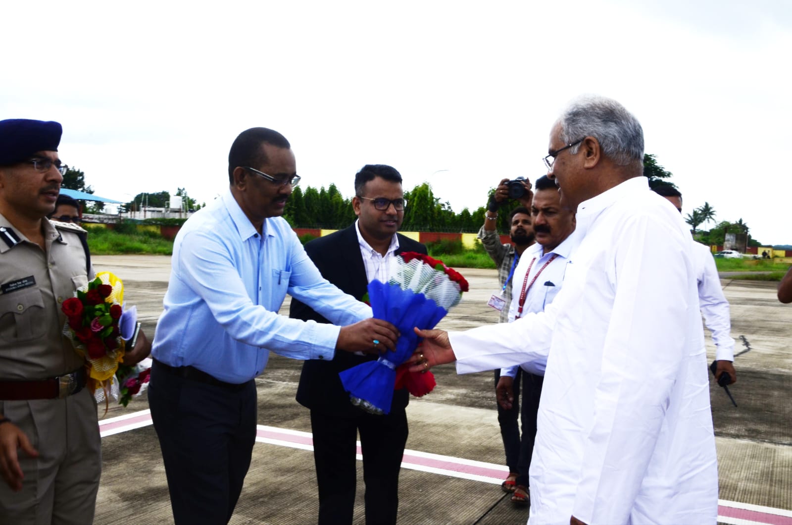 जगदलपुर (अमन दास मानिकपुरी)। बस्तर दशहरा के अंतर्गत मुरिया दरबार सहित विभिन्न कार्यक्रमों में शामिल होने के लिए अपने एक दिवसीय बस्तर प्रवास के दौरान जगदलपुर पहुंचने पर मुख्यमंत्री भूपेश बघेल का आत्मीय स्वागत किया गया। जगदलपुर के मां दंतेश्वरी एयरपोर्ट में जिले के प्रभारी मंत्री कवासी लखमा, सांसद दीपक बैज, बस्तर क्षेत्र आदिवासी विकास प्राधिकरण के अध्यक्ष लखेश्वर बघेल, संसदीय सचिव रेखचन्द जैन, हस्त शिल्प विकास बोर्ड के अध्यक्ष चंदन कश्यप, मछुआ कल्याण बोर्ड अध्यक्ष एमआर निषाद, चित्रकोट विधायक राजमन बेंजाम, विधायक बीजापुर विक्रम मंडावी, विधायक कोंडागांव मोहन मरकाम, महापौर सफीरा साहू, नगर निगम सभापति कविता साहू, कमिश्नर श्याम धावड़े, पुलिस महानिरीक्षक सुंदर राज पी., सीसीएफ मो.शहीद, कलेक्टर चंदन कुमार, वरिष्ठ पुलिस अधीक्षक जितेंद्र मीणा सहित अन्य जनप्रतिनिधियों और अधिकारियों ने मुख्यमंत्री श्री बघेल की अगवानी की।