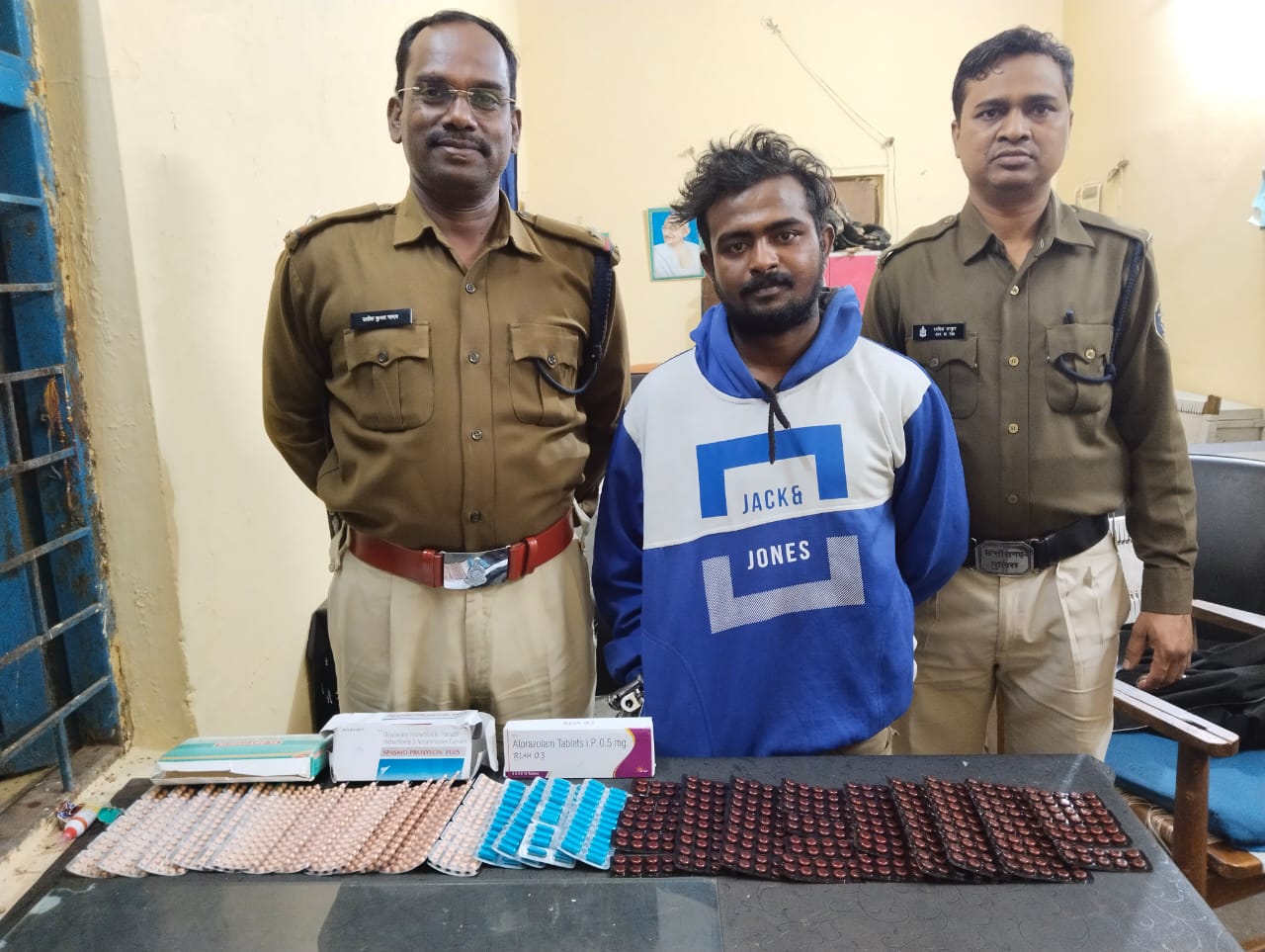 सीएसपी विकास कुमार ने बताया कि पुलिस को मुखबिर से सूचना मिली कि शहर के नयामुण्डा में एक युवक अवैध नशीली दवाईयां अन्य लोगों को बेच रहा है। सूचना मिलते ही बस्तर पुलिस के वरिष्ठ अधिकारियों के दिशा निर्देश पर बोधघाट टीआई उप पुलिस अधीक्षक (प्रशिक्षु) आशीष नेताम के नेतृत्व में पुलिस की एक टीम तैयार की गई। इसके बाद पुलिस ने मुखबिर के द्वारा बताए गए नयामुण्डा के इलाके में स्थित मंगल भवन के पास से एक संदिग्ध युवक की पहचान करते हुए और घेराबंदी करते हुए उसे पकड़ लिया। इसके बाद पुलिस ने पकड़े गए संदिग्ध युवक से पूछताछ करते हुए उसकी तलाशी लेना शुरू किया। तलाशी के दौरान पुलिस ने युवक के पास से अवैध नशीली दवाई अल्प्राजोलम टेबलेट के 1200 नग, नाइट्रोजेपाम टेबलेट के 440 नग और स्पास्मो टेबलेट के 96 नग बरामद किया। जिसकी कीमत 5 हजार रुपये से ज्यादा आंकी गई है। पुलिस की कड़ी पूछताछ में आरोपी तापस हलधर (25) निवासी नयामुण्डा ने अपना जुर्म कबूल कर लिया। इसके बाद पुलिस ने आरोपी को तत्काल गिरफ्तार कर लिया। अभी पुलिस ने एनडीपीएस की धारा 21 (बी) के तहत मामला दर्ज करते हुए आरोपी को जेल भेज दिया है।