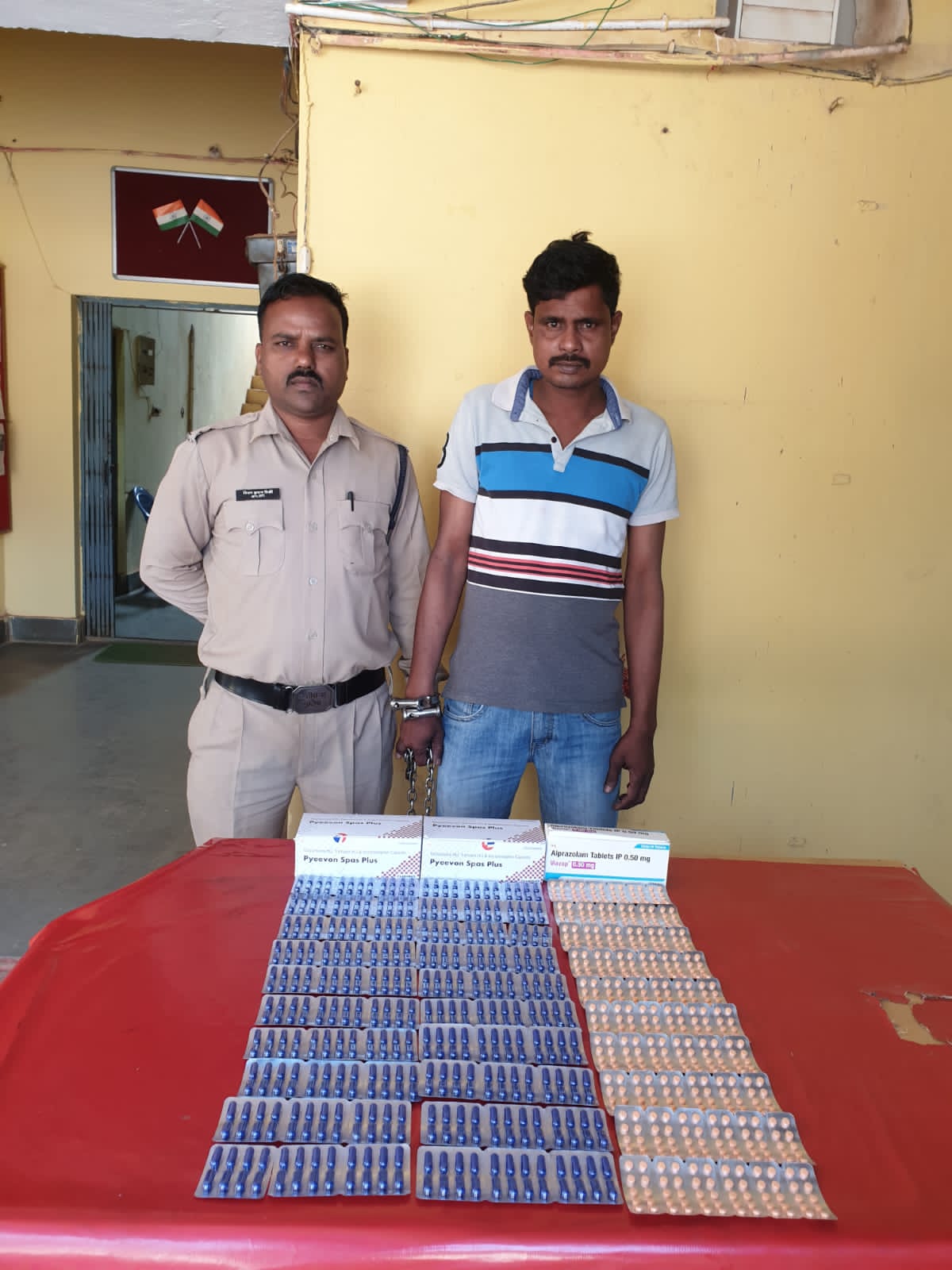 सीएसपी विकास कुमार ने बताया कि पुलिस को मुखबिर से सूचना मिली कि नया बस स्टैंड के पास एक युवक संदिग्ध सामान लेकर बेचने की फिराक में घूम रहा है। सूचना मिलते ही बस्तर पुलिस के वरिष्ठ अधिकारियों के दिशा निर्देश पर बोधघाट टीआई दिलबाग सिंह के नेतृत्व में पुलिस की एक टीम को तुरंत नया बस स्टैंड के लिए रवाना किया गया। मौके पर पहुंचने के बाद पुलिस ने पतासाजी करते हुए नए बस स्टैंड के पास से एक संदिग्ध युवक को घेराबंदी करने के बाद पकड़ लिया। पकड़ने के बाद पुलिस ने युवक से पूछताछ करते हुए उसके पास रखे एक पीली रंग की पॉलीथिन की तलाशी ली। इस तलाशी में पुलिस ने युवक के पास में रखे पॉलीथिन से पीवॉन स्पॉस प्लस कैप्सूल्स के 480 नग और अल्प्राजोलम टेबलेट के 600 नग बरामद किया है। जब पुलिस ने पकड़े गए युवक से इन प्रतिबंधित दवाइयों से सम्बंधित कागजात के बारे में पूछा तो युवक ने पुलिस को कोई संतोषजनक जवाब नही दिया। पुलिस की कड़ी पूछताछ में पकड़े गए युवक ने अपना जुर्म कबूल करते हुए पुलिस को बताया कि वह यह प्रतिबंधित नशीली दवाइयों का जखीरा शहर में बेचने की नीयत में था। इसके बाद पुलिस ने आरोपी किशोर कुमार (37) निवासी गंगामुण्डा को गिरफ्तार कर लिया। पुलिस ने बताया कि आरोपी के पास से मिले प्रतिबंधित दवाइयों की कीमत 5 हजार रुपये से अधिक है। फिलहाल पुलिस ने एनडीपीएस की धारा 21 (बी) के तहत मामला दर्ज करते हुए आरोपी को जेल भेज दिया है।