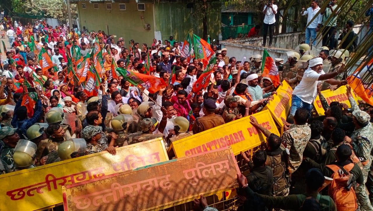 भारतीय जनता पार्टी के कार्यकर्ता आवास प्रभावितों के साथ नया बस स्टैंड से रैली लेकर विधायक निवास घेरा और हल्ला बोला। रैली में बड़ी संख्या में महिलाएं अपने आवास के लिए फार्म के साथ शामिल थी। विधायक निवास के बाहर पुलिस प्रशासन ने रैली को बैरिकेड लगाकर रोक दिया आगे नहीं जाने दिया जिससे आक्रोशित होकर प्रभावित जनता नारे लगाकर भूपेश सरकार से मोर आवास मोर अधिकार दिलाने की मांग की।