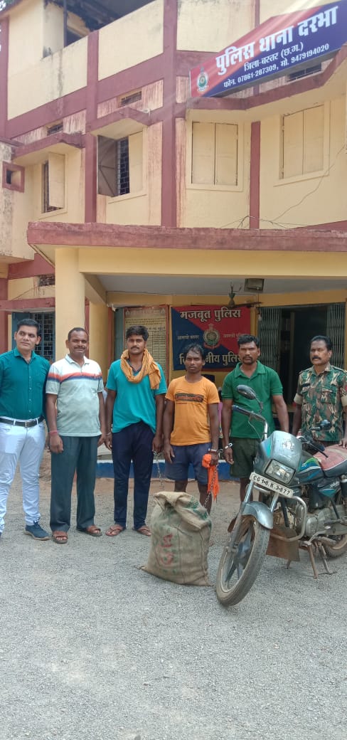 सीएसपी विकास कुमार ने बताया कि पुलिस को सूचना मिली कि दो युवक एक बाइक में सवार होकर कुछ संदिग्ध सामान ओड़िसा से खरीदकर सुकमा जिले के पुसपाल से होते हुए जगदलपुर की तरफ जा रहे है. सूचना मिलते ही दरभा टीआई शिशुपाल सिन्हा के नेतृत्व में पुलिस की एक टीम को तत्काल ही एनएच 30 में स्थित कामानार फारेस्ट नाके पर के लिए रवाना किया गया. पुलिस की टीम ने मौके पर पहुंचने के बाद नाकेबंदी करते हुए वहां से गुजरने वाले वाहनों की तलाशी लेना शुरू कर दिया. इसी दौरान पुलिस ने सुकमा की ओर से आ रहे एक बाइक सीजी 18 के 3877 में सवार दो युवकों को तलाशी के लिए रोक लिया. इसके बाद पुलिस ने युवकों से पूछताछ करते हुए उनके पास रखे बोरे की तलाशी ली. इस तलाशी में पुलिस ने बोरे में से लगभग 10 किलो से अधिक मात्रा में गांजा बरामद किया. जिसकी कीमत 54 हजार आंकी गई है. बोरे से गांजा मिलते ही पुलिस ने बाइक सवार दोनों युवकों को पकड़ लिया. कड़ी पूछताछ में दोनों आरोपी मनधर बघेल (30) निवासी पुसपाल (सुकमा) और लच्छीन्दर नाग (30) निवासी कस्तूरी (सुकमा) ने अपना जुर्म कबूल करते हुए पुलिस को बताया कि वह दोनों यह गांजा जगदलपुर शहर में लाकर बेचने की फिराक में थे. जुर्म कबूल करते ही पुलिस ने दोनों आरोपियों को गिरफ्तार कर लिया. फिलहाल पुलिस के द्वारा आबकारी एक्ट की धारा 20 (ख) के तहत मामला दर्ज करते हुए दोनों आरोपियों को जेल भेज दिया है.