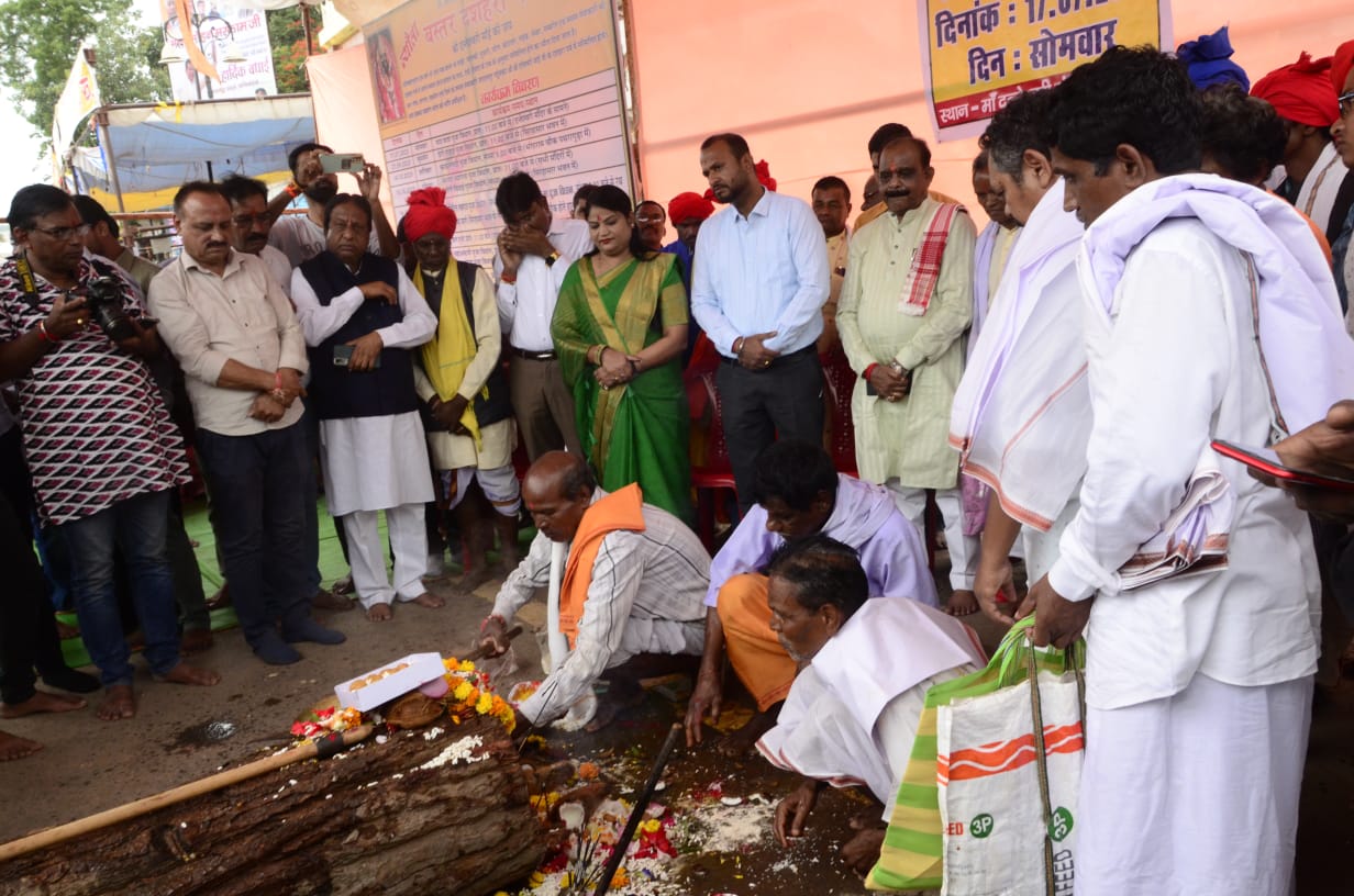 जगदलपुर (अमन दास मानिकपुरी). हरियाली अमावस्या के मौके पर बस्तर की आराध्य देवी माँ दन्तेश्वरी मन्दिर के सामने आज सोमवार को पाट जात्रा पूजा विधान के साथ ही विश्व प्रसिद्ध ऐतिहासिक बस्तर दशहरा पर्व शुरू हो गया. बस्तर दशहरा पर्व के इस प्रथम पूजा विधान में बस्तर क्षेत्र आदिवासी विकास प्राधिकरण के अध्यक्ष लखेश्वर बघेल, महापौर सफीरा साहू सहित अन्य जनप्रतिनिधियों और बस्तर दशहरा पर्व समिति के पारंपरिक सदस्य मांझी-चालकी, मेम्बर-मेम्बरीन, पुजारी-गायता तथा जिला कलेक्टर विजय दयाराम के. एवं जिला प्रशासन के अधिकारियों के साथ ही बड़ी संख्या में जनसमुदाय शामिल हुए.