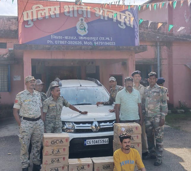 भानपुरी टीआई चंद्रशेखर श्रीवास ने बताया कि पुलिस को मुखबिर से सूचना मिली थी कि एक सफेद रंग की डस्टर कार में एक युवक भारी मात्रा में संदिग्ध सामान लेकर भिलाई की ओर से भानपुरी की तरफ जा रहा है. सूचना मिलते ही बस्तर पुलिस के वरिष्ठ अधिकारियों के दिशा निर्देश पर भानपुरी टीआई के नेतृत्व में पुलिस की एक टीम को भानपुरी थाना क्षेत्र के सिवनी चौक देवड़ा के लिए रवाना किया गया. इसके बाद पुलिस की टीम ने मौके पर नाकेबंदी करते हुए वहां से गुजरने वाले वाहनों की तलाशी लेना शुरू कर दिया. चेकिंग के दौरान ही पुलिस ने भिलाई की तरफ से आ रही एक सफेद रंग की डस्टर कार सीजी 10 एई 5944 को रोक लिया. रोकने के बाद पुलिस ने कार में सवार युवक से पूछताछ करते हुए उसकी कार की तलाशी ली. इस तलाशी में पुलिस ने कार में छुपाकर रखा हुआ लगभग 15 पेटी (750 नग) अवैध अंग्रेजी शराब बरामद किया. जिसकी कीमत 75 हजार रुपये बताई गई है. इतनी भारी मात्रा में अवैध शराब मिलने के बाद पुलिस ने कार सवार युवक को पकड़ लिया. कड़ी पूछताछ में पकड़े गए युवक ने अपना जुर्म कबूल करते हुए पुलिस को बताया कि वह यह अवैध अंग्रेजी शराब भिलाई के कोहका से खरीदकर भानपुरी के ही किसी इलाके में डिलीवर करने के लिए पहुंचा हुआ था. जुर्म कबूल करते ही पुलिस ने आरोपी राहुल सोनी (27) निवासी पुरानी बस्ती (भिलाई) को गिरफ्तार कर लिया. फिलहाल पुलिस ने आबकारी एक्ट की धारा 34 (2) के तहत मामला दर्ज करते हुए आरोपी को जेल भेज दिया है. वहीं इस मामले में पुलिस ने अवैध अंग्रेजी शराब समेत डस्टर कार को भी जब्त कर लिया है. ज्ञात हो कि बीते दिनों पुलिस ने नगरनार थाना क्षेत्र से भी लाखों रुपयों का अवैध अंग्रेजी शराब का जखीरा पकड़ा था.