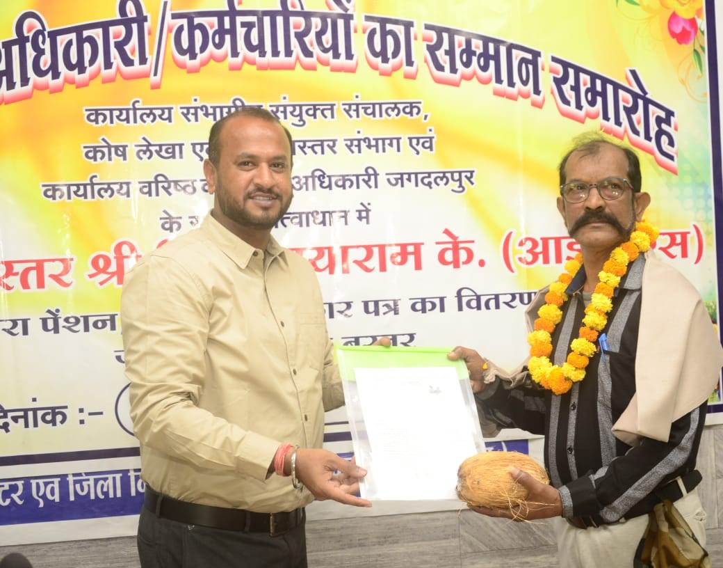 जगदलपुर. कलेक्टर विजय दयाराम के. द्वारा सेवानिवृत्त हो रहे 19 अधिकारी कर्मचारी को पेंशन, उपदान प्राधिकार पत्र का वितरण किया गया. इस अवसर पर कलेक्टर ने कहा कि परिवार पेंशन के प्रकरणों का सभी विभागों के अधिकारियों को संवेदनशील होकर प्राथमिकता से सभी सवत्वों का निराकरण समय पर करने की आवश्यकता है. प्रशासनिक मशीनरी से अलग हो रहे साथियों के पास प्रशासन का एक लंबा अनुभव है,उनके अनुभव का लाभ नए अधिकारी – कर्मचारियों का लाभ लेना चाहिए. सभी ने अपने सेवा काल में बस्तर के विकास में सहयोग दिया है, इसके लिए बस्तर की बुनियाद में भाग रहने का सभी को हमेशा गर्व होना चाहिए.