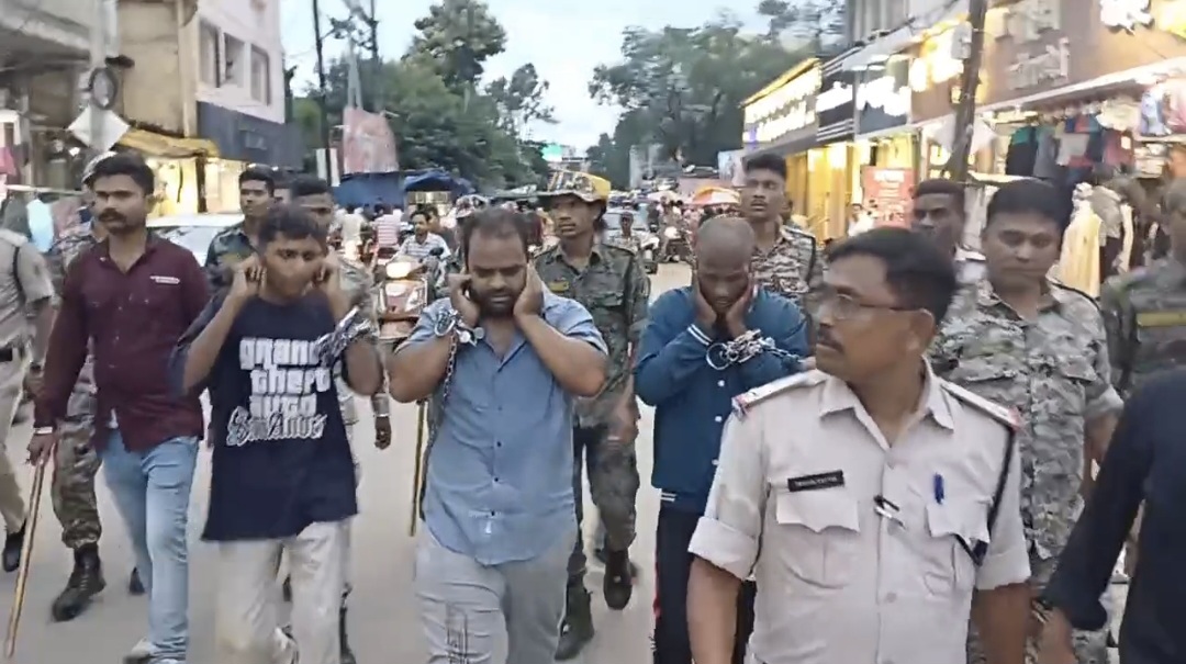 जगदलपुर. आवश्यक कार्यवाही के बाद आज शुक्रवार की शाम पुलिस ने तीन मामले के तीन आरोपियों का जुलूस निकाला है.