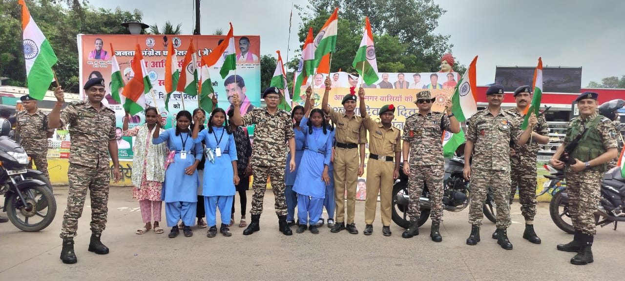 मदर टेरेसा स्कूल, एनसीसी कैडेट्स, सरकारी जूनियर कॉलेज के छात्र-छात्राओं और स्थानीय लोगों को तिरंगे बांटते हुए कमांडेंट एच.पी. सिंह ने कहा, “तिरंगा हमारी आजादी की सांसों में बसा है, इसे हर घर, हर दिल में फहराना है.” उन्होंने सभी को सोशल मीडिया पर #HarGharTiranga और SelfieWithTiranga के साथ इस अभियान को जन-जन तक पहुंचाने की अपील की.