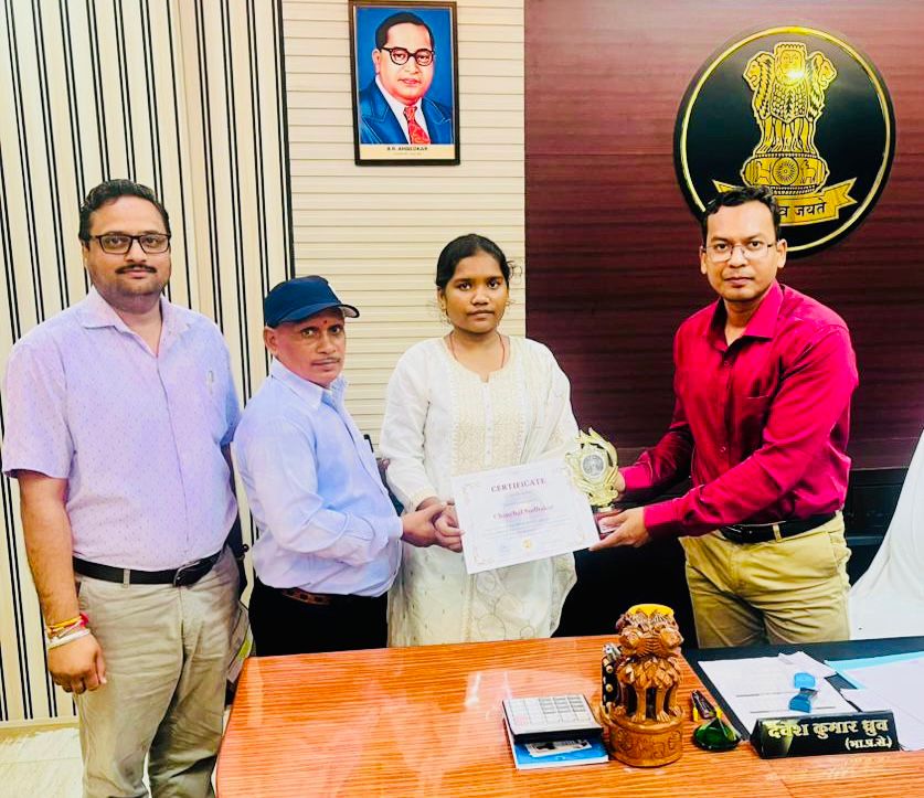 इस असाधारण उपलब्धि पर विद्यालय परिवार ने गहरी प्रसन्नता व्यक्त की. छात्रा चंचल सुधाकर को कलेक्टर देवेश कुमार ध्रुव एवं विद्यालय के प्रधानाचार्य राजीव कुमार ने प्रमाणपत्र एवं ट्रॉफी प्रदान कर सम्मानित किया. इस अवसर पर कलेक्टर श्री ध्रुव ने चंचल को उनके उज्ज्वल भविष्य की शुभकामनाएँ दीं और उनके परिश्रम एवं समर्पण की सराहना की.