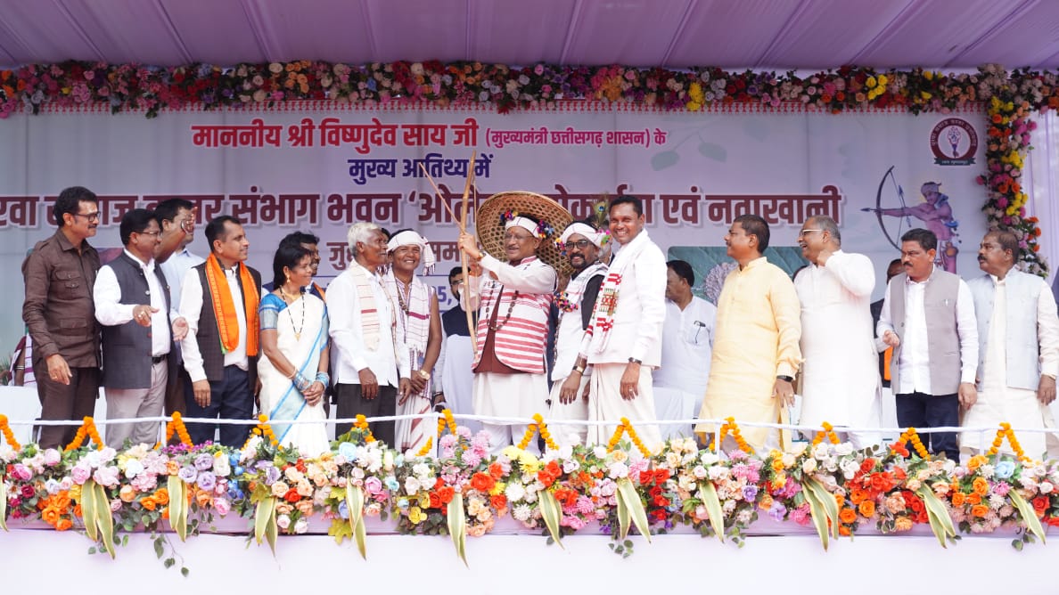 जगदलपुर (डेस्क) – छत्तीसगढ़ के मुख्यमंत्री विष्णुदेव साय ने आज रविवार को जगदलपुर के वन विद्यालय परिसर में आयोजित धुरवा समाज के संभाग स्तरीय नुआखाई मिलन समारोह में भाग लिया. इस अवसर पर उन्होंने नव-निर्मित सामाजिक भवन “ओलेख” का लोकार्पण किया और धुरवा समाज के विकास के लिए पाँच स्थानों पर डोम निर्माण हेतु ₹75 लाख की महत्वपूर्ण घोषणा की.