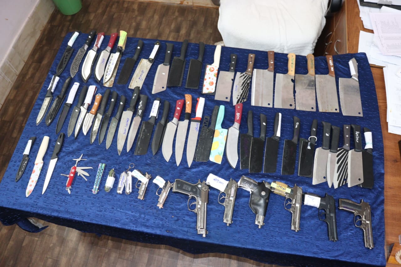 51 चाकू और 8 पिस्टल लाइटर बरामद