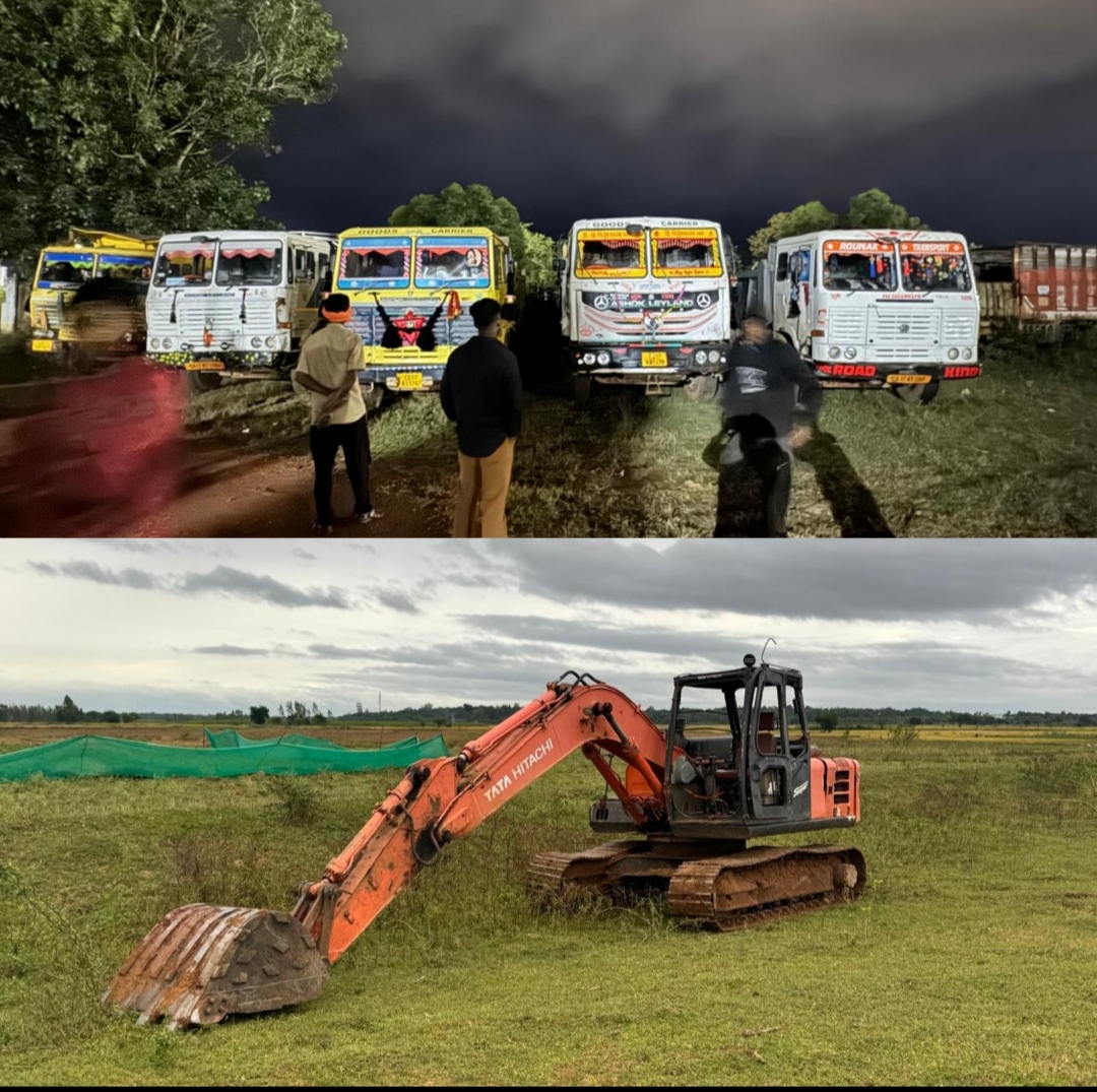 मौके से 5 टिप्पर और एक पोकलेन मशीन जब्त