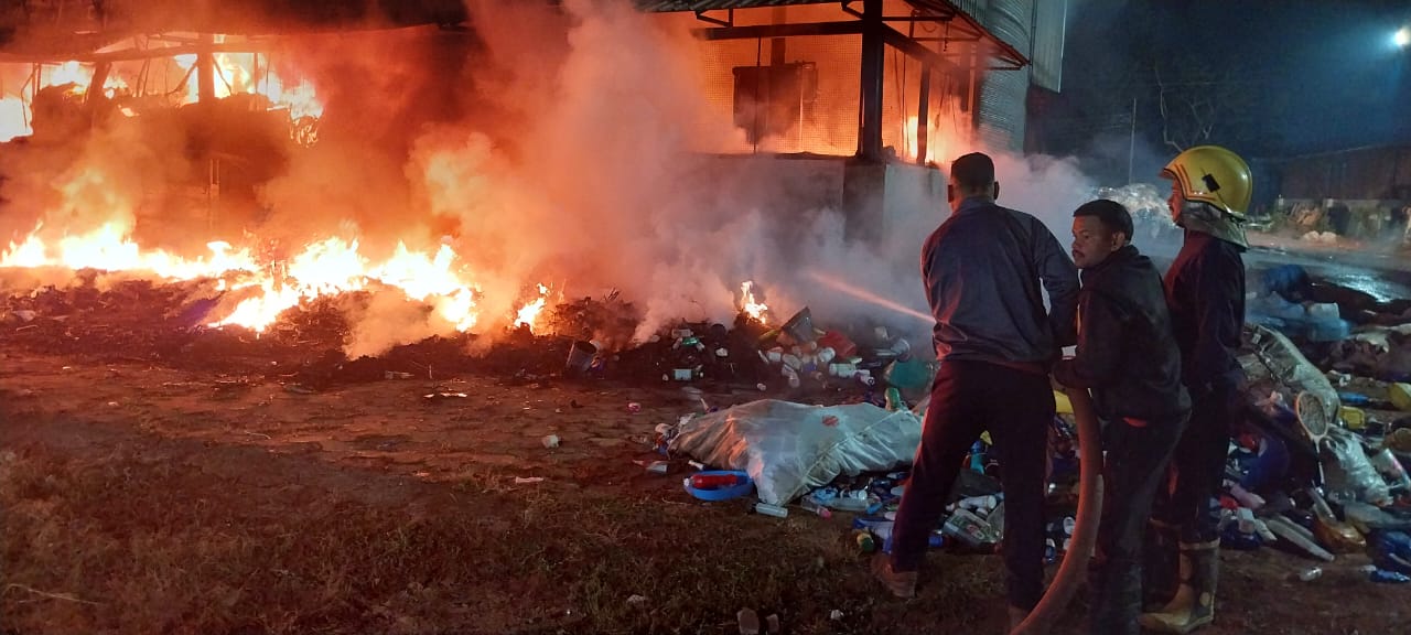 जगदलपुर (डेस्क) – शहर से सटे बाबू सेमरा क्षेत्र में स्थित एमआरएफ (MRF) सेंटर में बीती रात लगभग 12 बजे अचानक भीषण आग लग गई. आग इतनी भयंकर थी कि उसकी लपटें दूर से देखी जा सकती थीं.